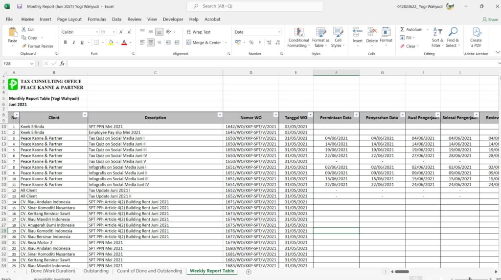 During my time working as an Admin Tax and Data Entry staff at a tax consultant office, I was responsible for preparing and organizing tax documents, managing client files, and entering financial data with accuracy. I supported the tax team by compiling monthly reports, verifying data, and ensuring all information was complete and up-to-date. My role required strong attention to detail, consistency, and the ability to maintain well-structured documentation for smooth tax processing.